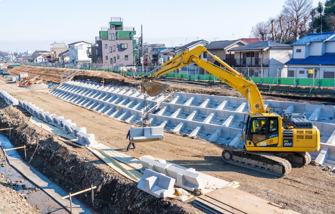 企画、指導、調整のもとに河川、砂防、地滑り防止施設、橋など土木工作物を建設したり、補修、改造又は解体する工事も行います。